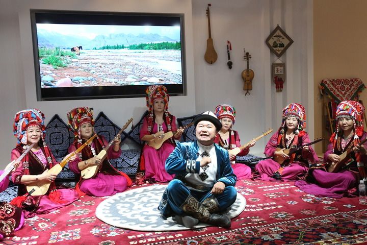 初秋清晨,新疆乌恰县,《玛纳斯》国家级非物质文明遗产代表性传承人江努日·图日干巴依在家里辅导学徒演唱。数千公里外的南京咪豆音乐节,买买提吐尔干·艾色克为年青观众带来摇滚版《玛纳斯》。