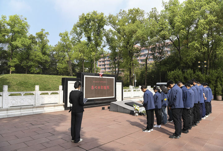 中铁建工集团重庆东站项目部员工在重庆歌乐山烈士陵园思念革新先烈(2024年3月28日摄)。